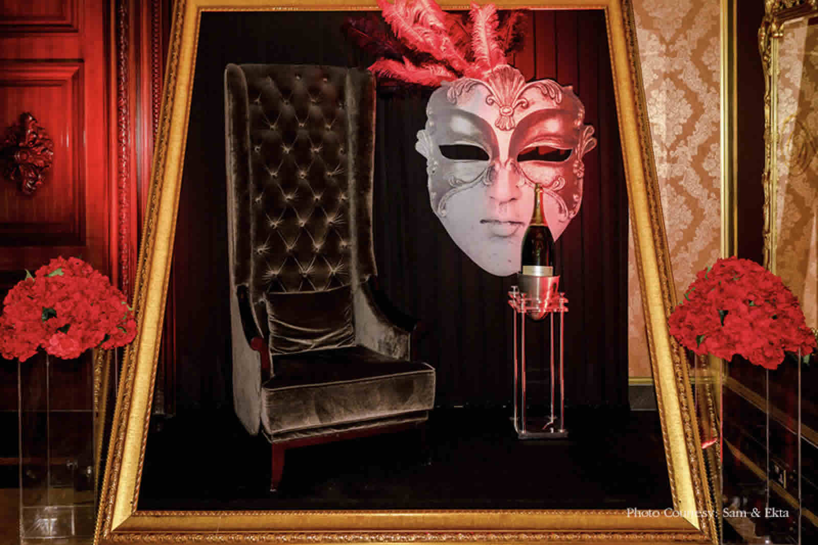 As dusk fell, the grandeur of the Venetian Masquerade enveloped the reception, casting a spell of mystery and allure. Ornate crystal chandeliers illuminated the ballroom, while half-masked guests danced and reveled, capturing cherished moments amid whispers of enchantment.