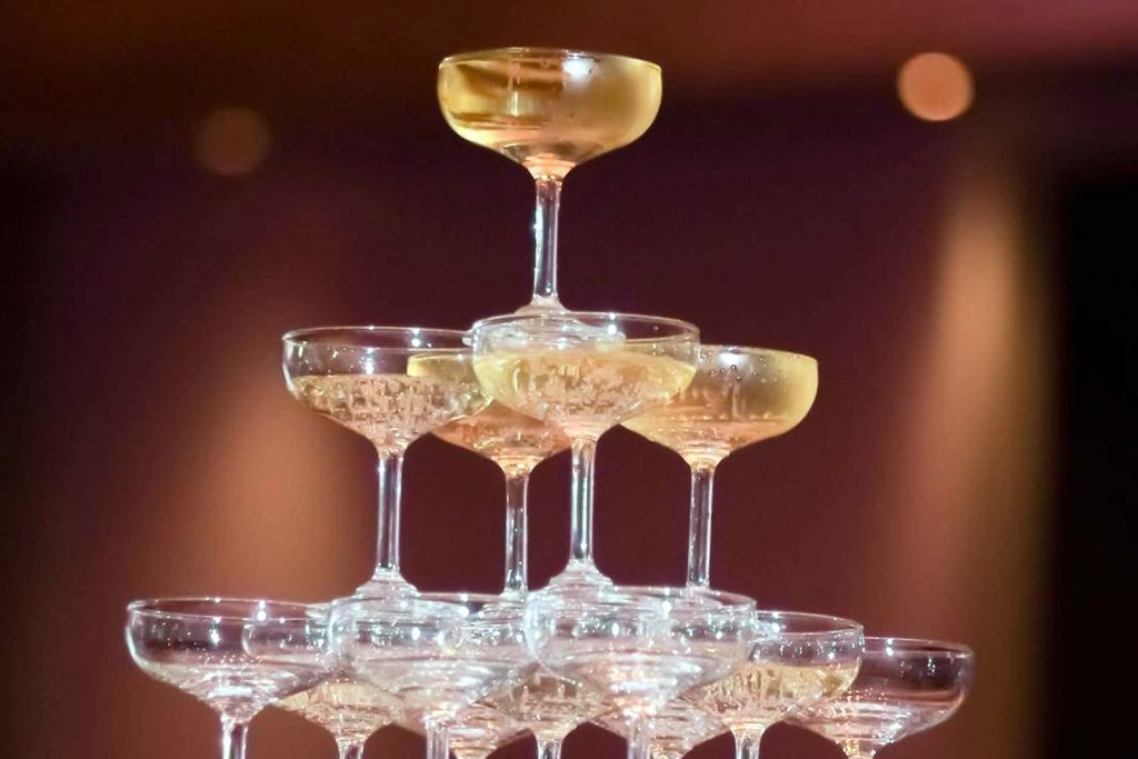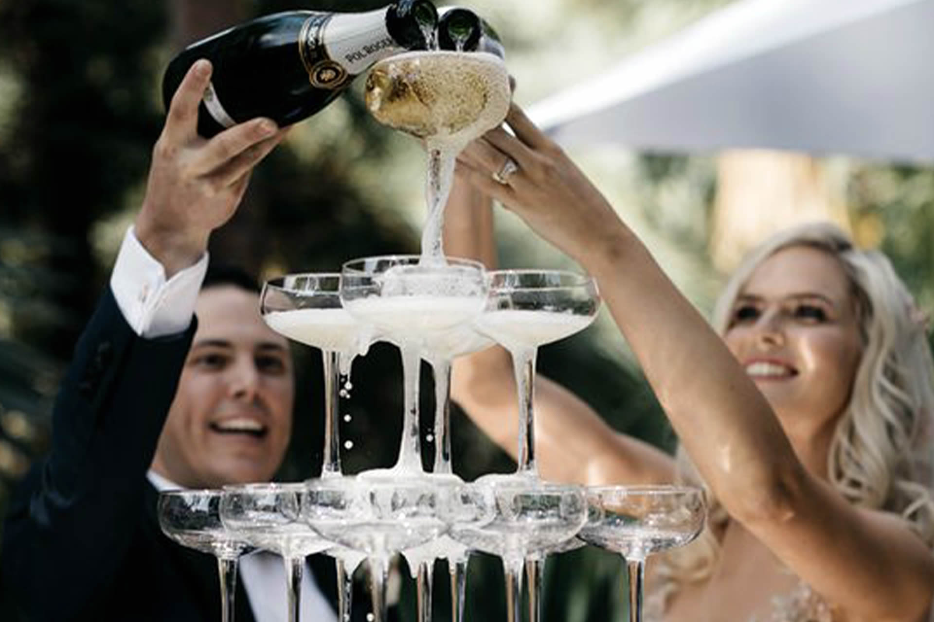 Flowing champagne down a pre-set pyramid tower makes for a interactive and captivating concept for the participants as well as the onlookers. By filling the cup right on top, the overflowing champagne trickles down into all levels and then served to all the guests.