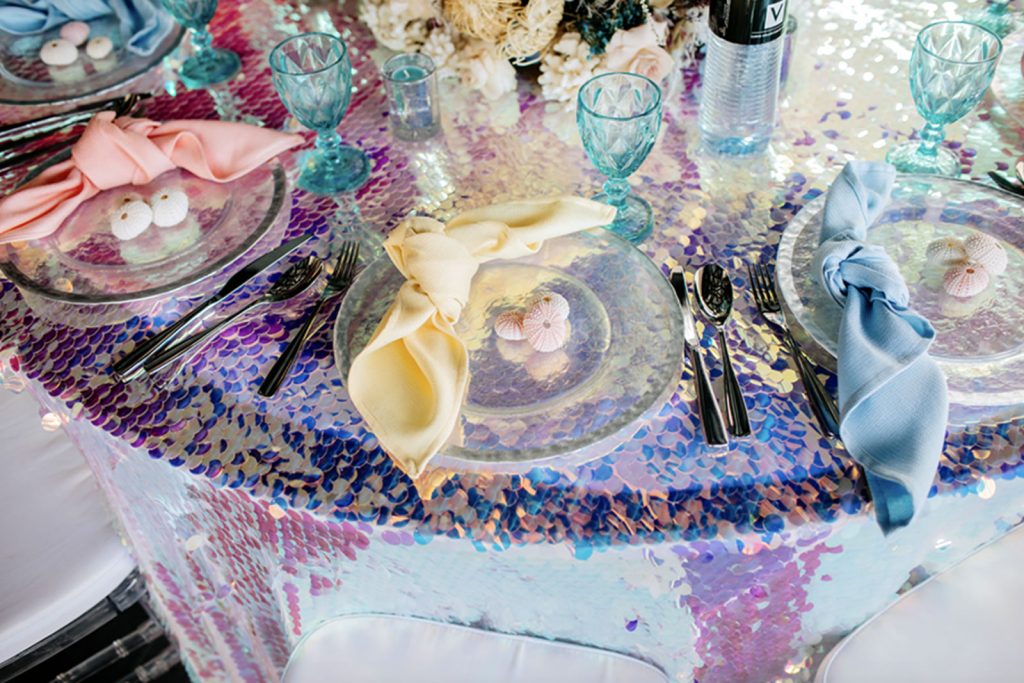 Cotton, Silk, Sheer, and Velvet have been used over the years as staple tablescape base linens. However, lately, we see couples opting for their favourite designers to work on their tablescapes for their big day starting from the base linen which incorporates their signature design. This creates a more luxe feel to the entire wedding event setting.