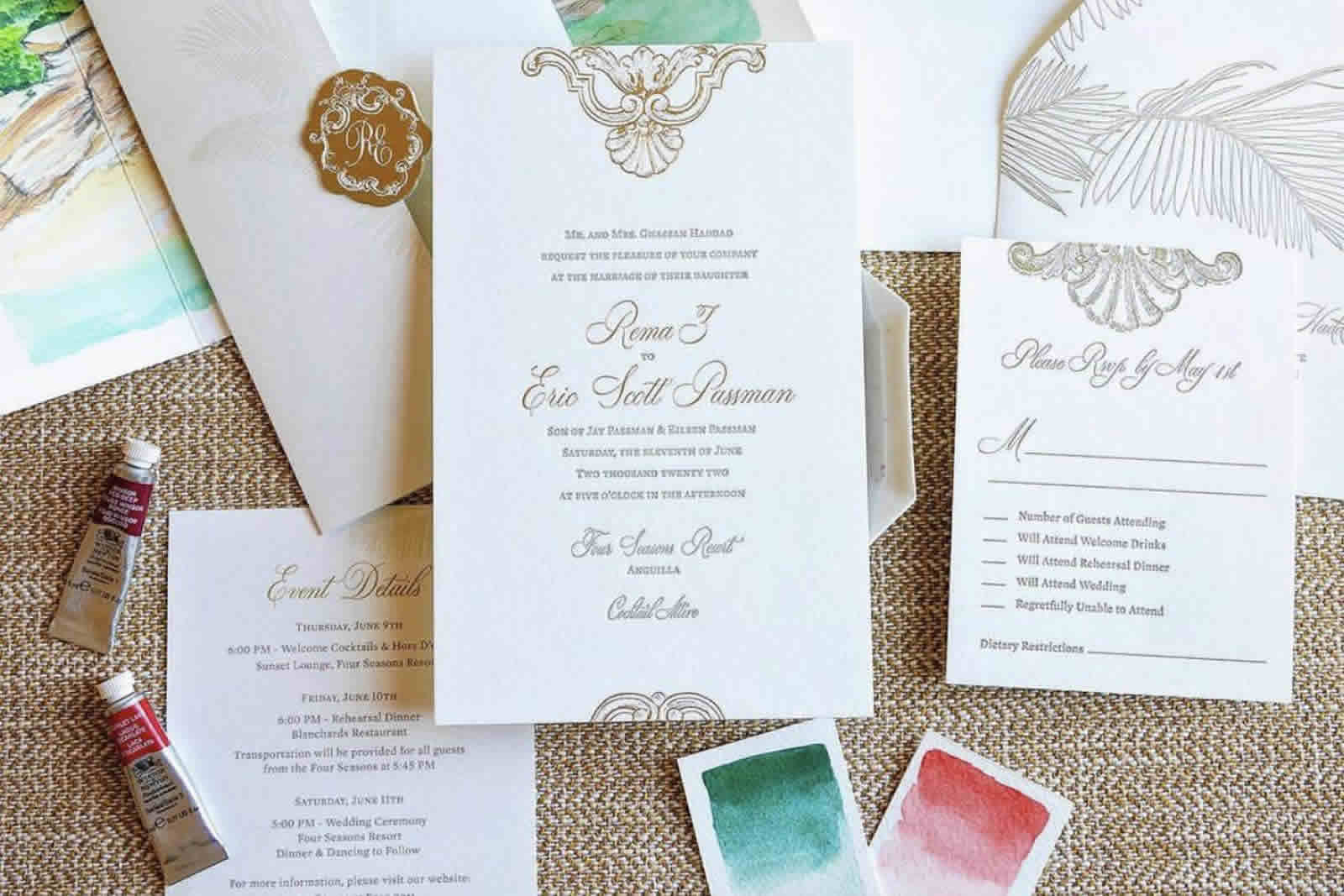 If you’re having a destination wedding, infuse elements inspired by the location into your invitations. Incorporate maps, landmarks, or cultural symbols that represent the destination. Use colors that evoke the essence of the location, whether it’s the vibrant hues of a tropical paradise or the soft pastels of a European countryside. These destination-inspired elements transport your guests to your chosen location even before they arrive.
