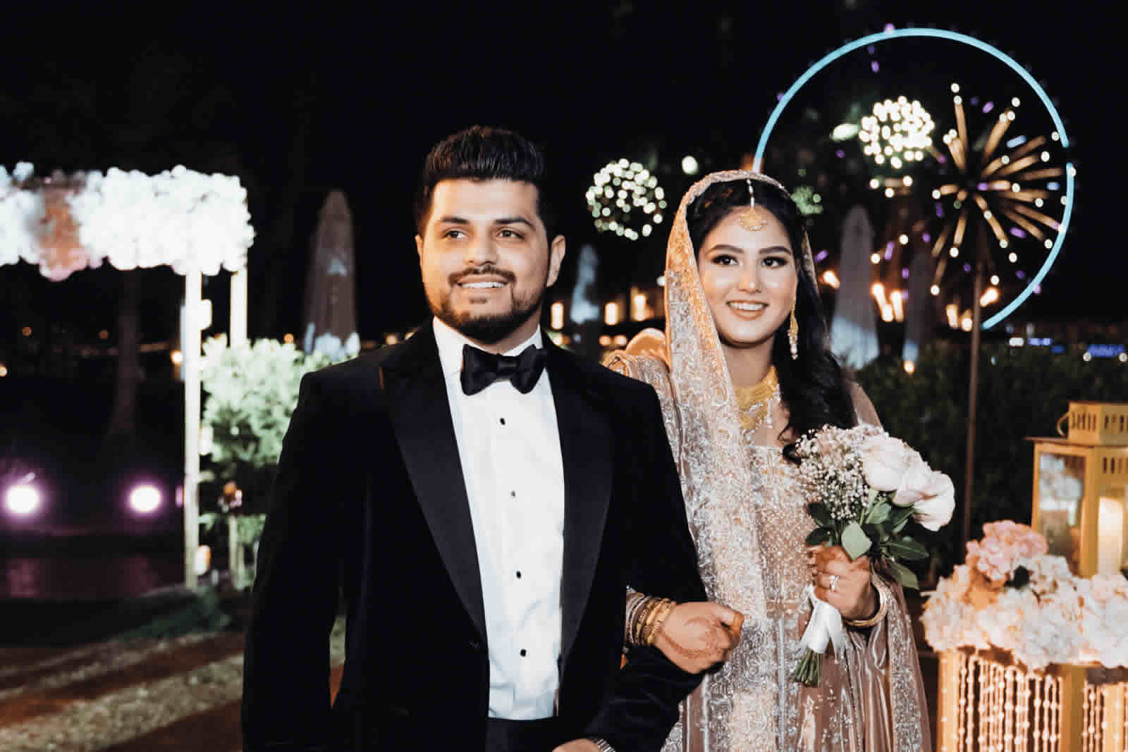 With the views to the Ain Dubai, the couple entered as the night sky shined bright and was filled with a show-stopping fireworks display as the celebrations came to an end.