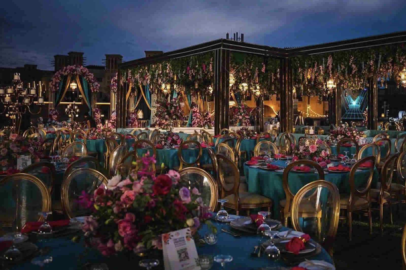 For their Sangeet evening, the venue at Madinat Jumeirah was transformed into a setting never seen before. The ‘Welcome to Agrabah’, Aladdin-themed event was one of the most exquisite events at this wedding. The Mehendi-Sangeet Bash at the gorgeous Fort Island at Madinat Jumeirah was inspired by the 1001 Arabian Nights and was converted into an astonishing Ottoman Night.